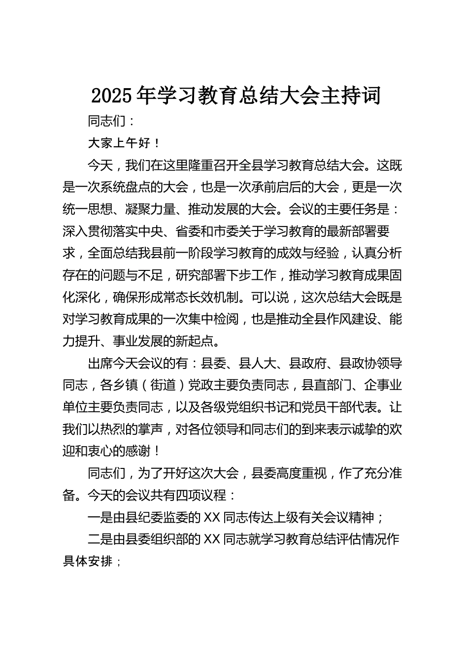 2025年學(xué)習(xí)教育總結(jié)大會(huì)主持詞