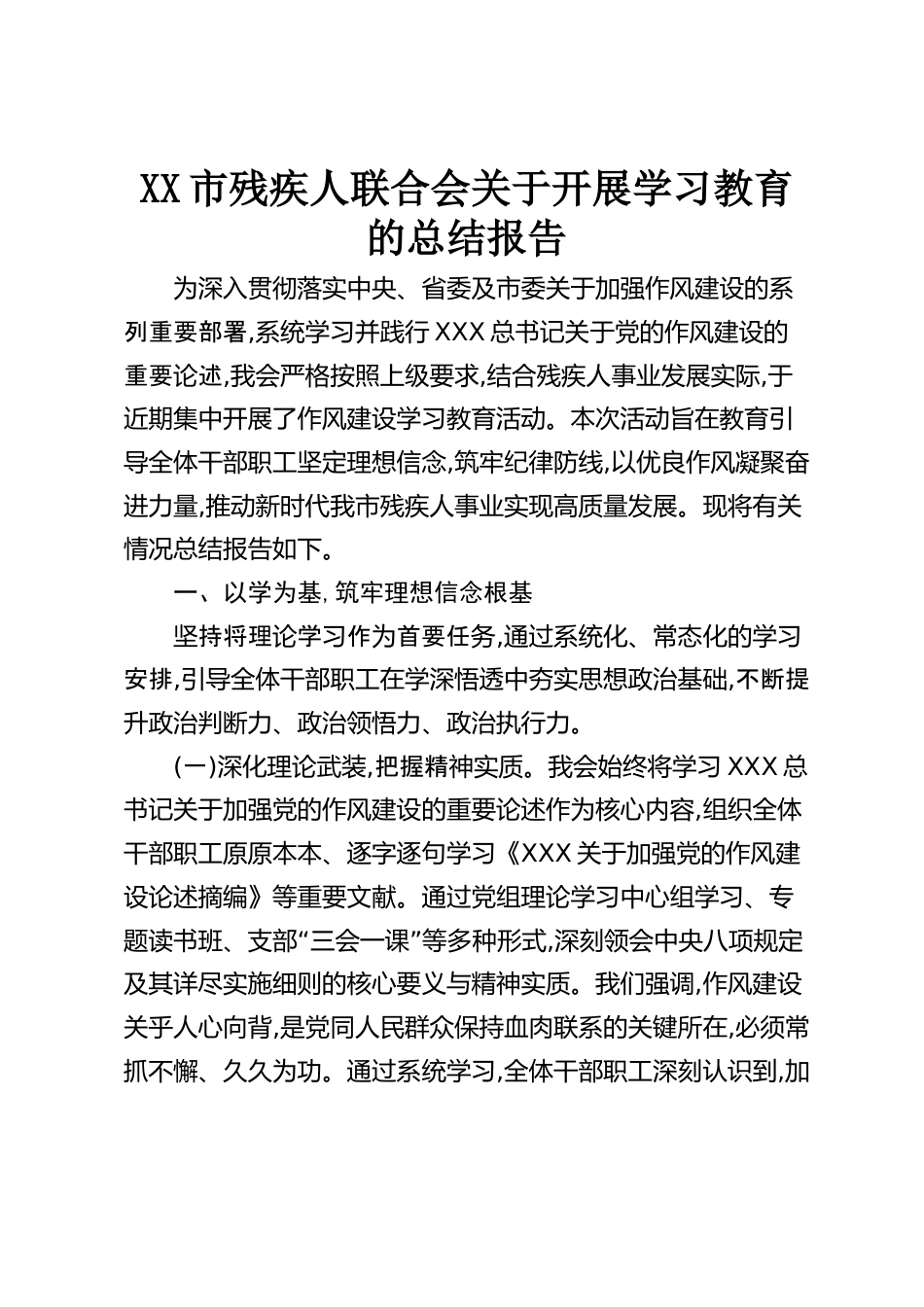 XX市殘疾人聯(lián)合會關(guān)于開展學(xué)習(xí)教育的總結(jié)報告