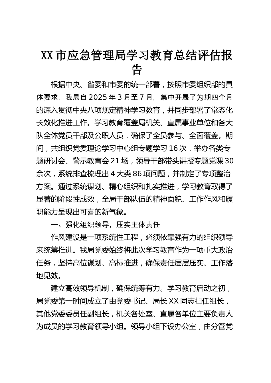 XX市應(yīng)急管理局學(xué)習(xí)教育總結(jié)評估報告