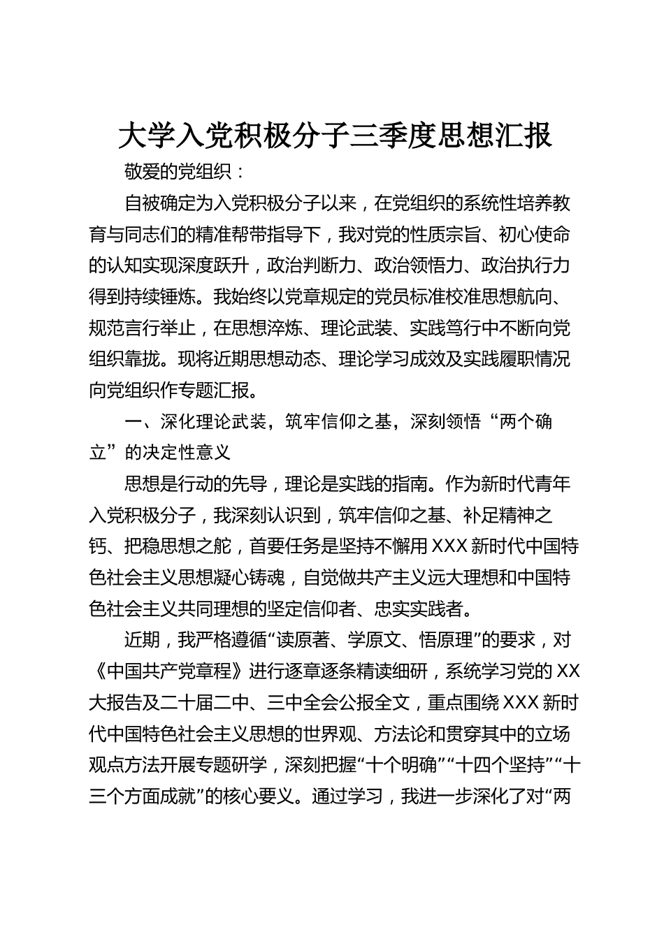 大學(xué)入黨積極分子三季度思想?yún)R報(bào)