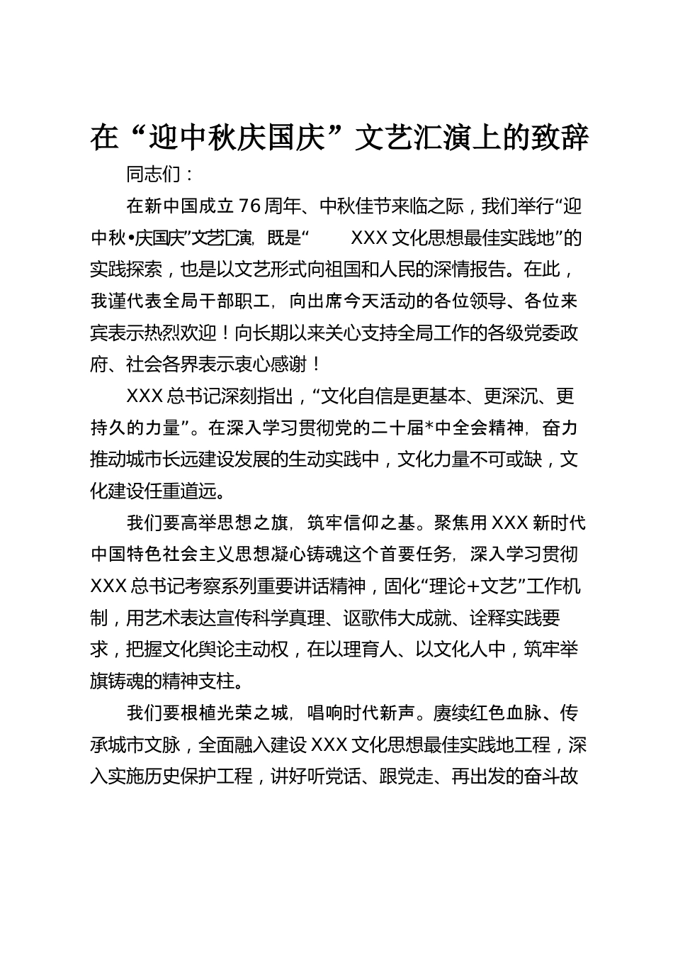 在“迎中秋 慶國慶”文藝匯演上的致辭