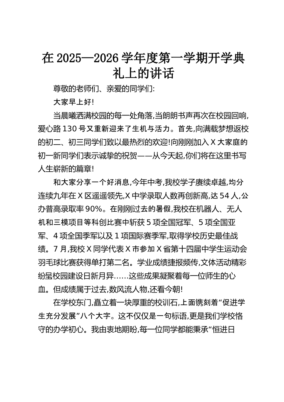 在2025—2026學(xué)年度第一學(xué)期開學(xué)典禮上的講話