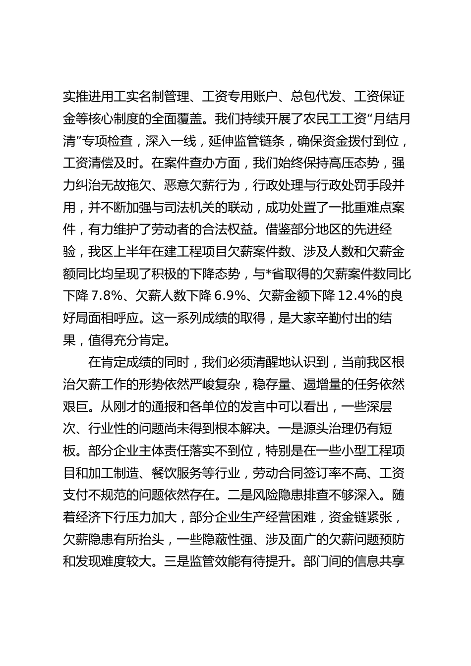 在2025年全區(qū)根治欠薪半年度工作會議上的講話