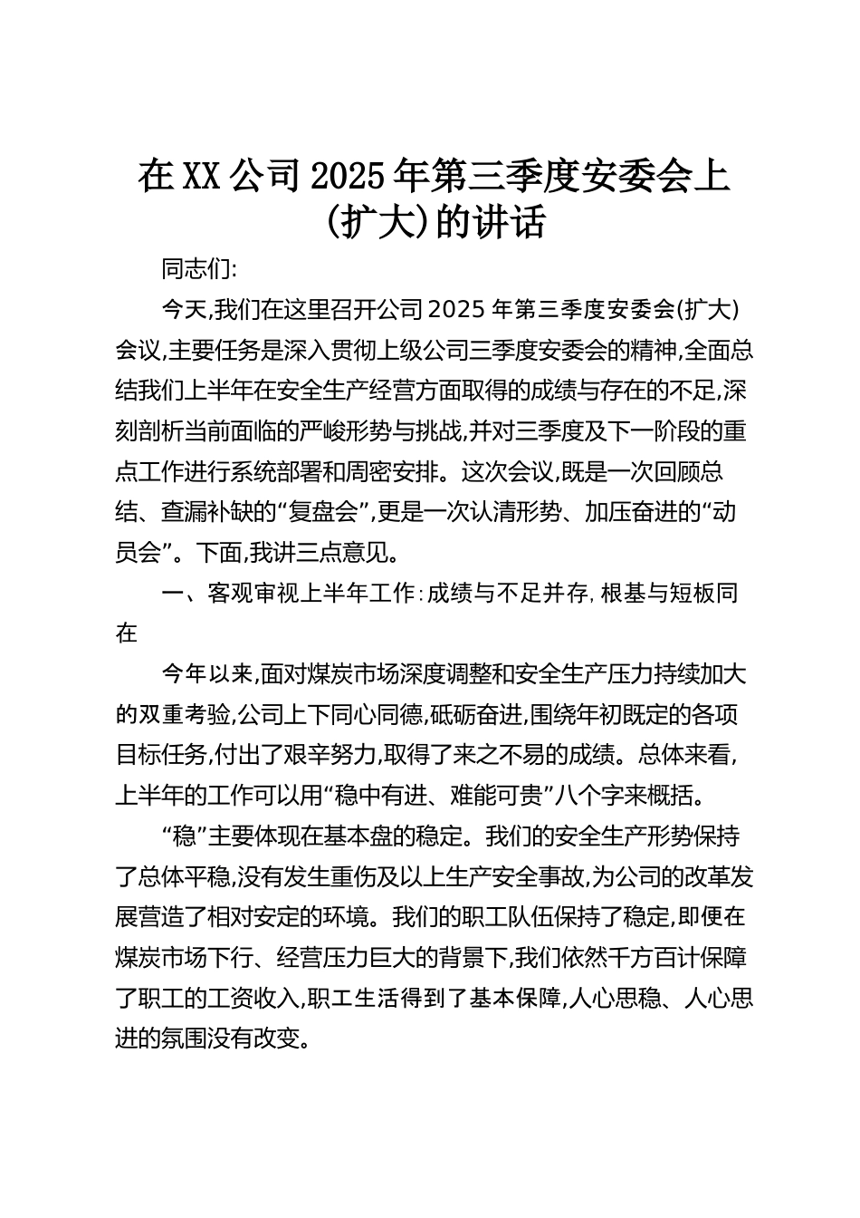 在XX公司2025年第三季度安委會上(擴(kuò)大)的講話