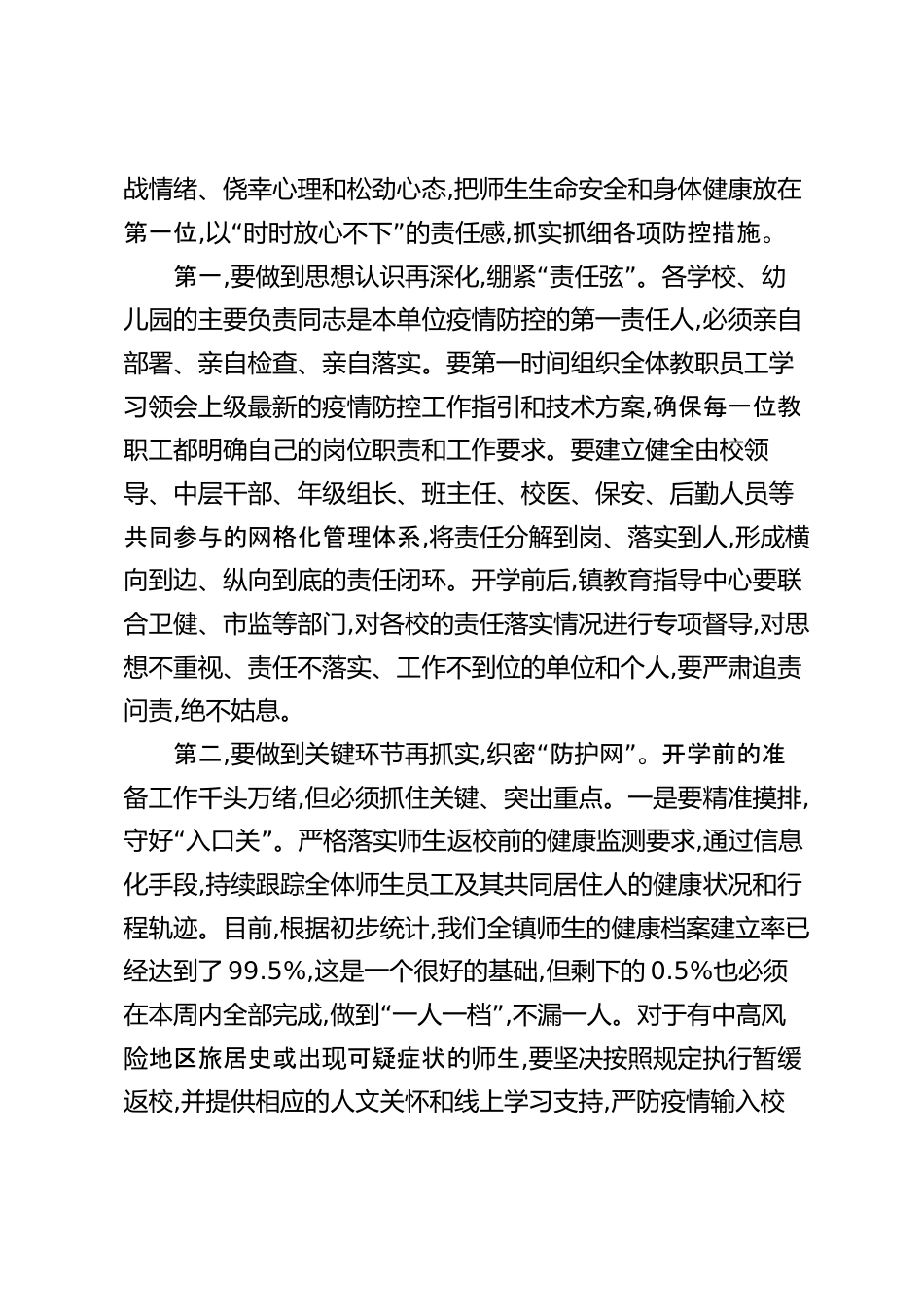 在XX鎮(zhèn)教育系統(tǒng)防疫與開學安全工作部署會議上的講話