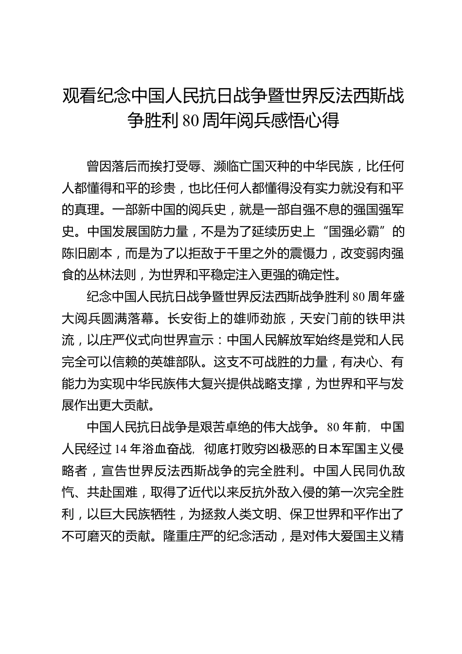 觀看紀(jì)念中國人民抗日戰(zhàn)爭暨世界反法西斯戰(zhàn)爭勝利80周年閱兵感悟心得