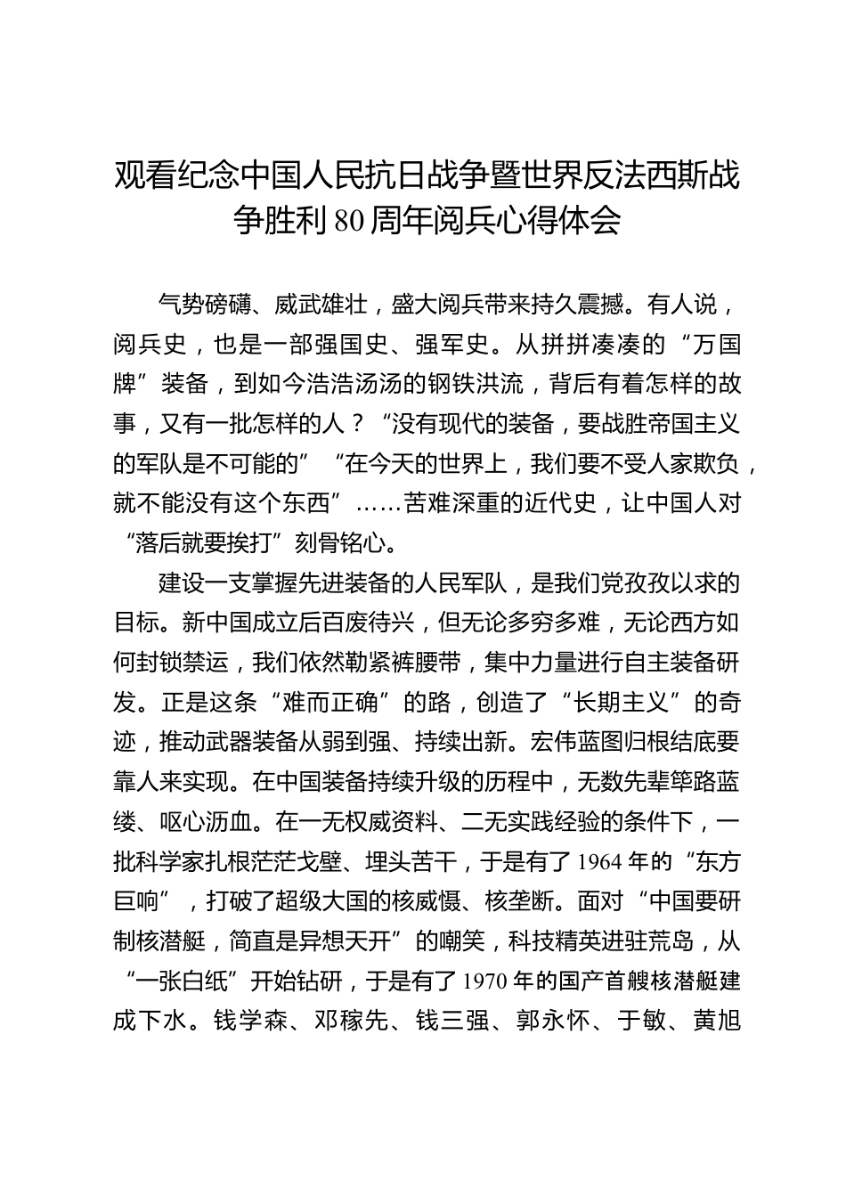 觀看紀念中國人民抗日戰(zhàn)爭暨世界反法西斯戰(zhàn)爭勝利80周年閱兵心得體會