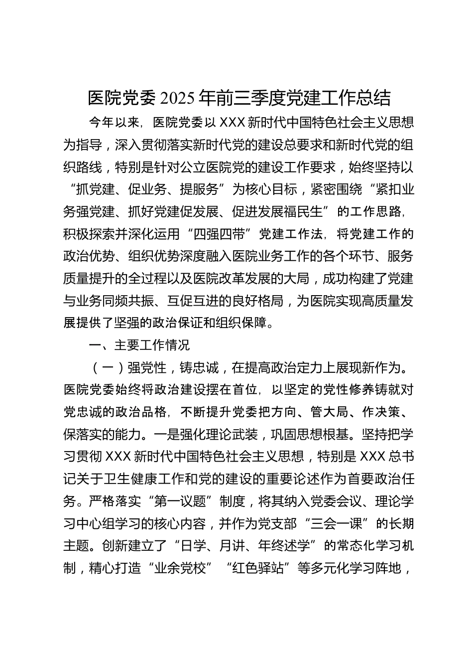醫(yī)院黨委2025年前三季度黨建工作總結(jié)