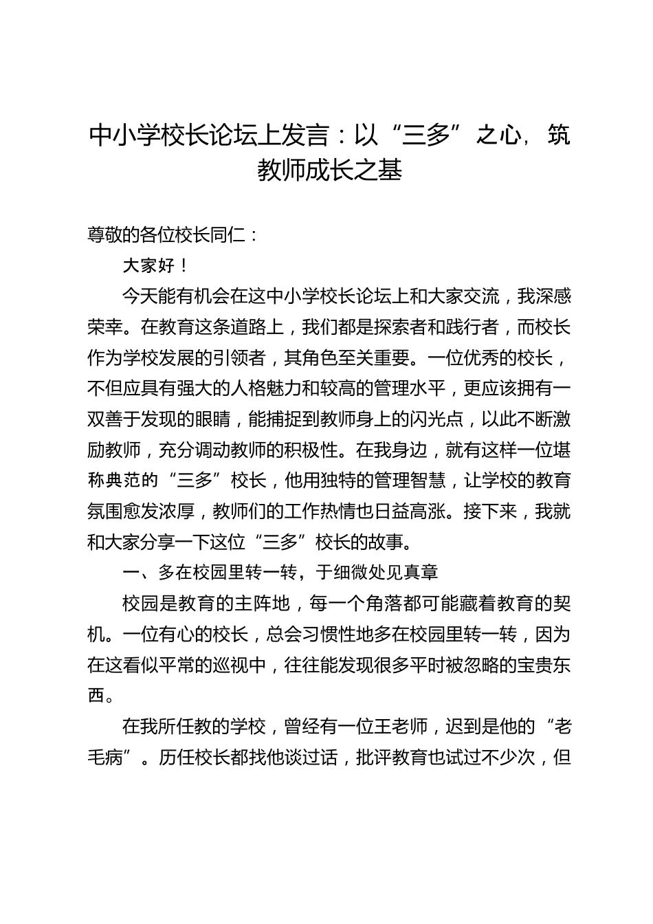 中小學(xué)校長論壇上發(fā)言:以“三多”之心,筑教師成長之基