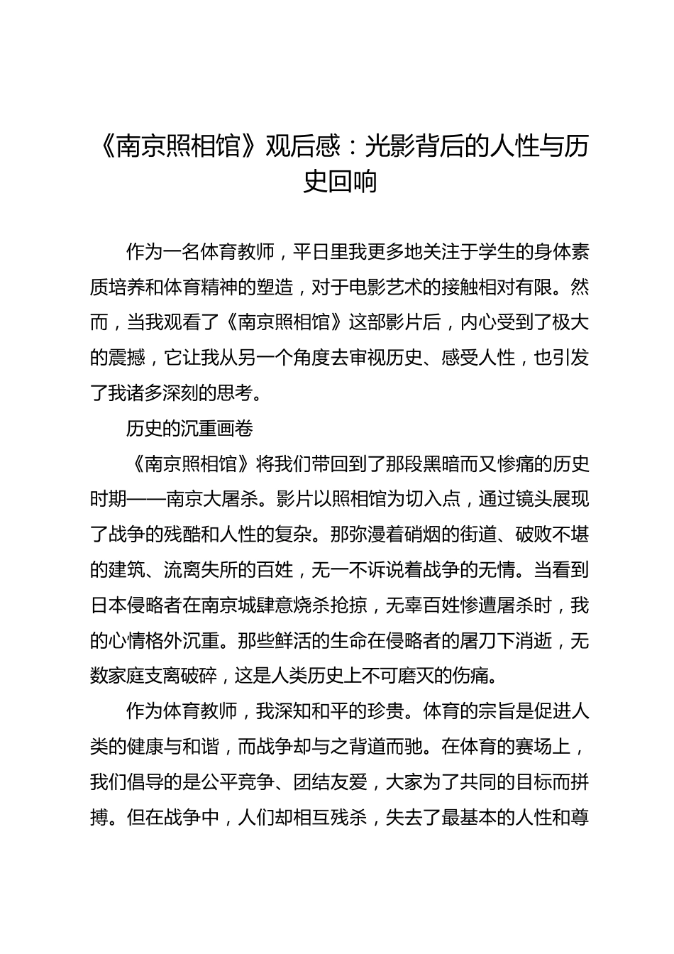 體育教師《南京照相館》觀后感:光影背后的人性與歷史回響