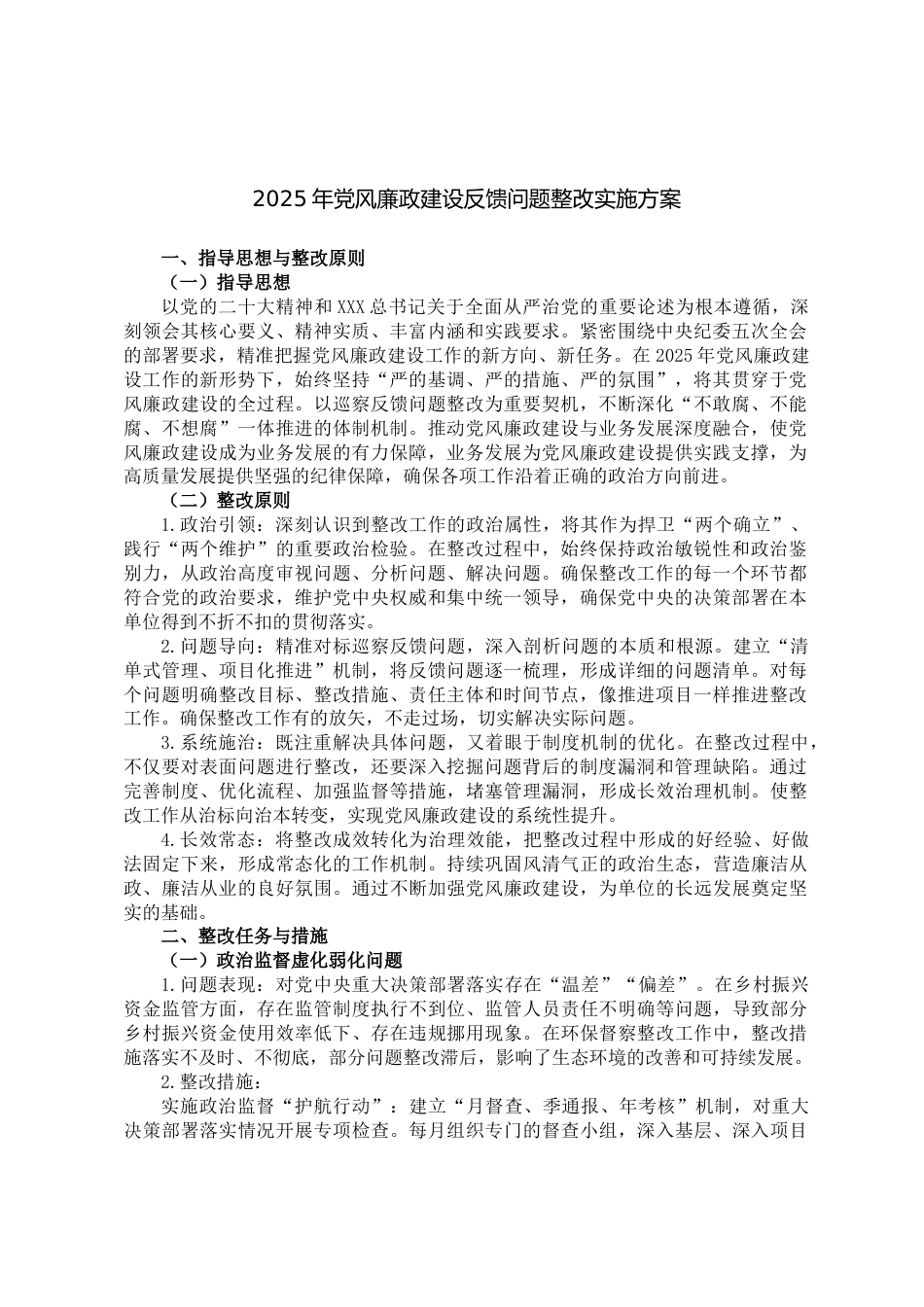 2025年黨風(fēng)廉政建設(shè)反饋問題整改實施方案