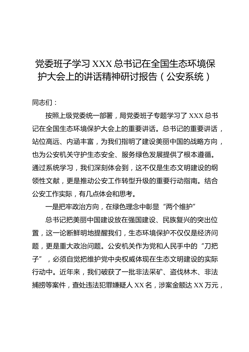2025年黨委班子學(xué)習(xí)習(xí)近平總書記在全國生態(tài)環(huán)境保護(hù)大會上的講話精神研討報告(公安系統(tǒng))