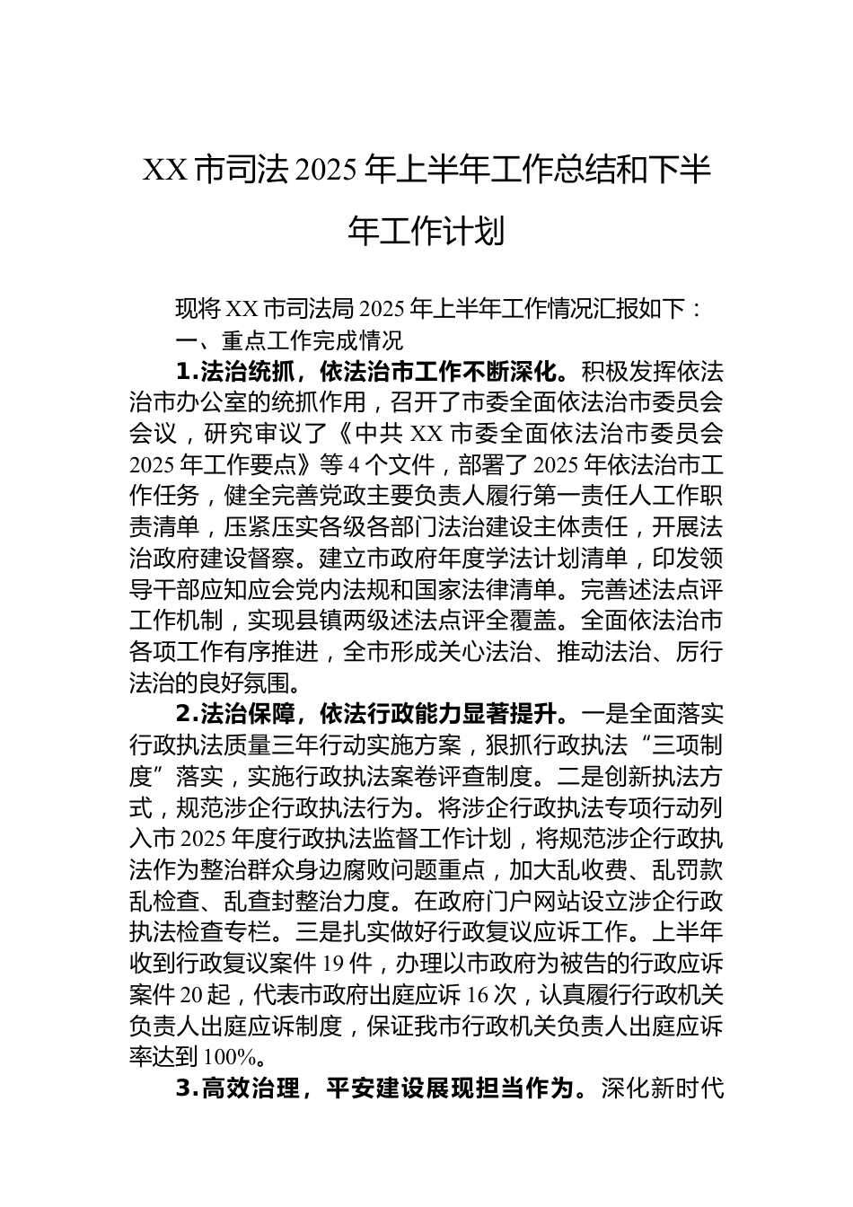 XX市司法2025年上半年工作總結(jié)和下半年工作計劃