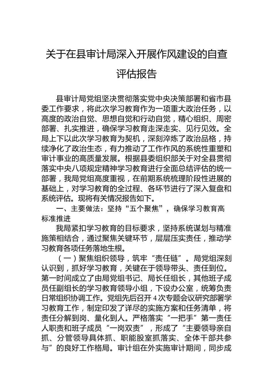 關(guān)于在縣審計(jì)局深入開(kāi)展作風(fēng)建設(shè)的自查評(píng)估報(bào)告