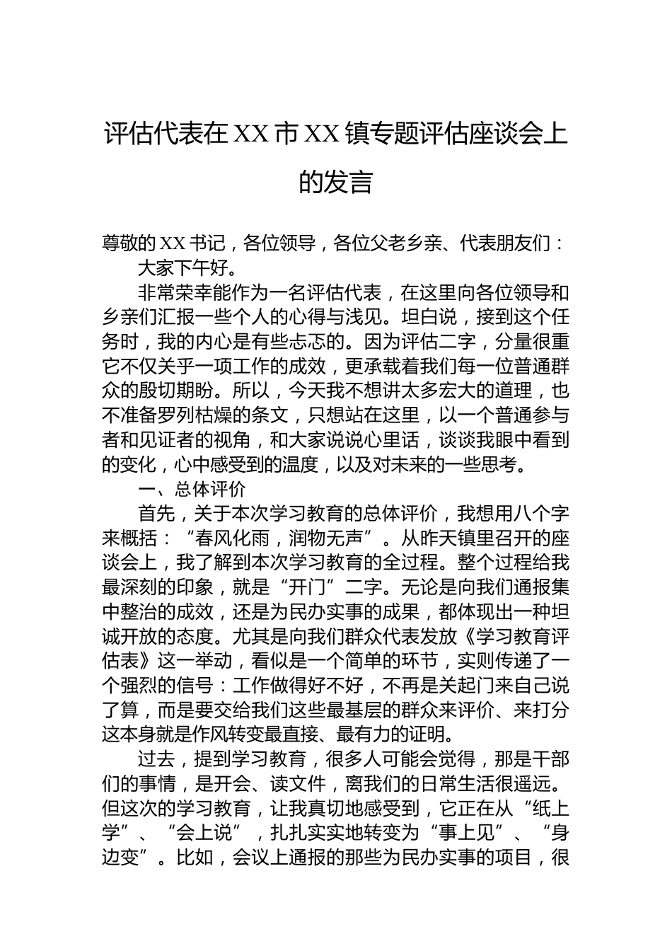 評估代表在XX市XX鎮(zhèn)專題評估座談會上的發(fā)言