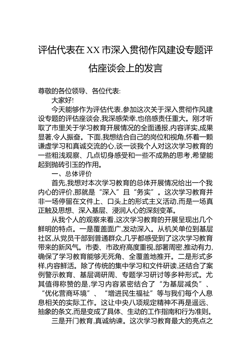 評估代表在XX市深入貫徹作風(fēng)建設(shè)專題評估座談會上的發(fā)言