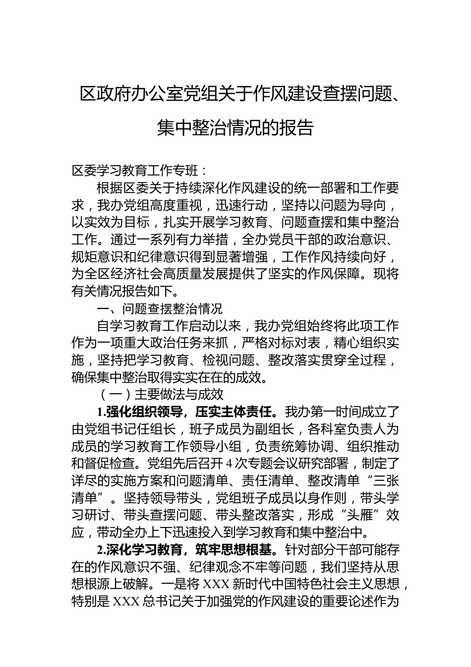 區(qū)政府辦公室黨組關(guān)于作風(fēng)建設(shè)查擺問題、集中整治情況的報(bào)告
