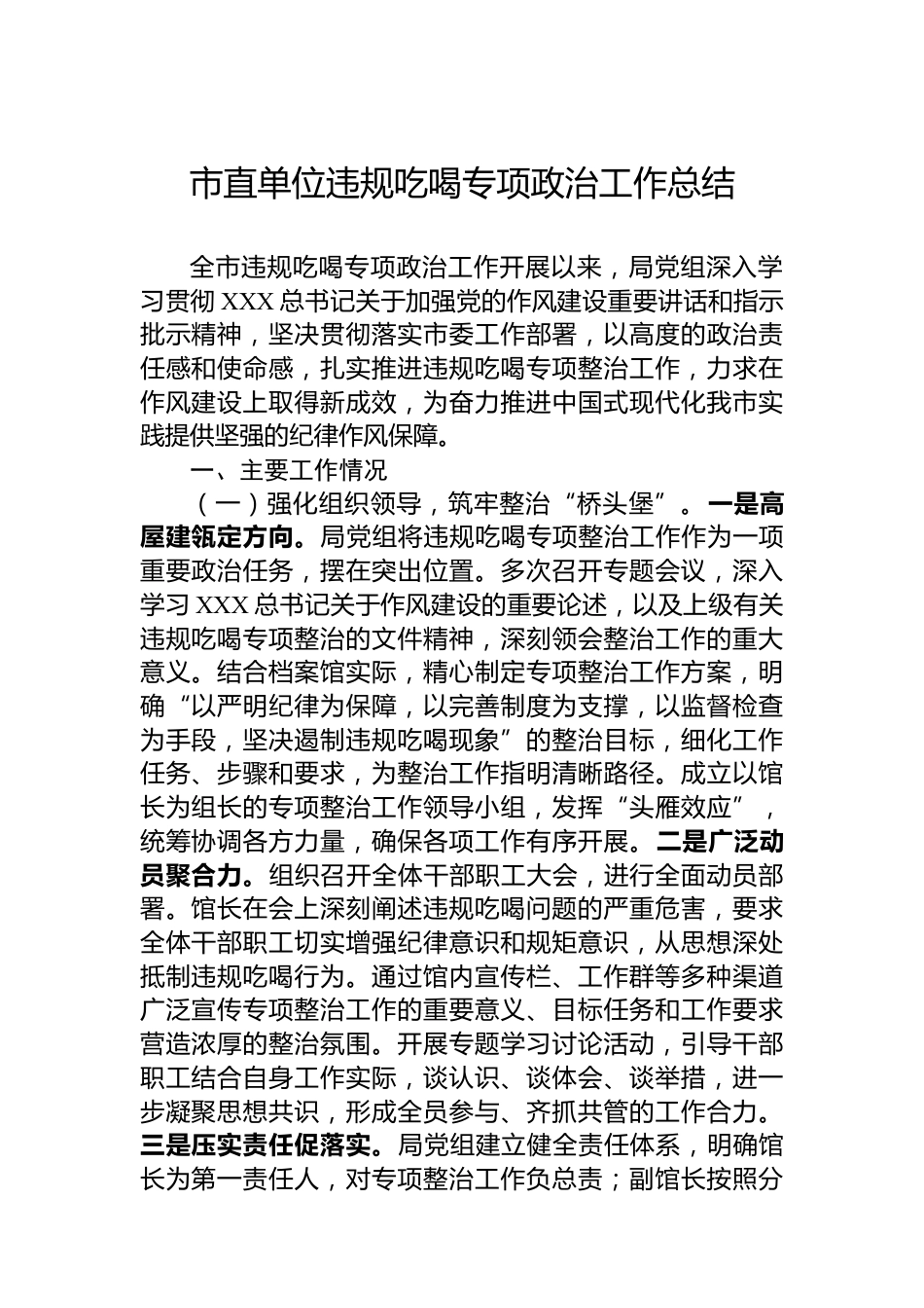 市直單位違規(guī)吃喝專項(xiàng)政治工作總結(jié)