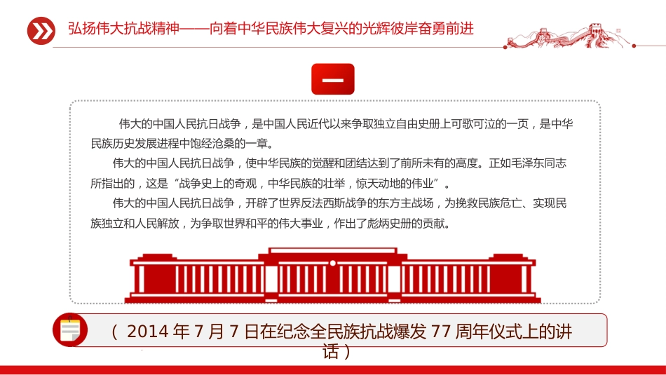 總書記關(guān)于弘揚(yáng)偉大抗戰(zhàn)精神重要論述PPT課件(帶講稿)