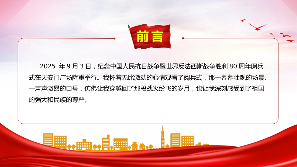 九三閱兵觀后感PPT:紀(jì)念抗日戰(zhàn)爭勝利80周年課件(帶講稿)
