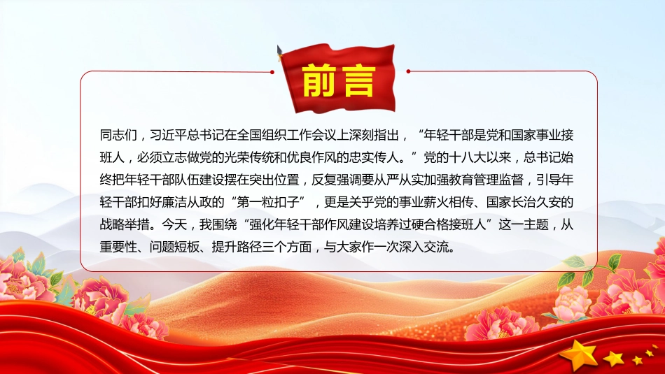 2025微黨課PPT(帶講稿):強化年輕干部作風建設培養(yǎng)過硬合格接班人