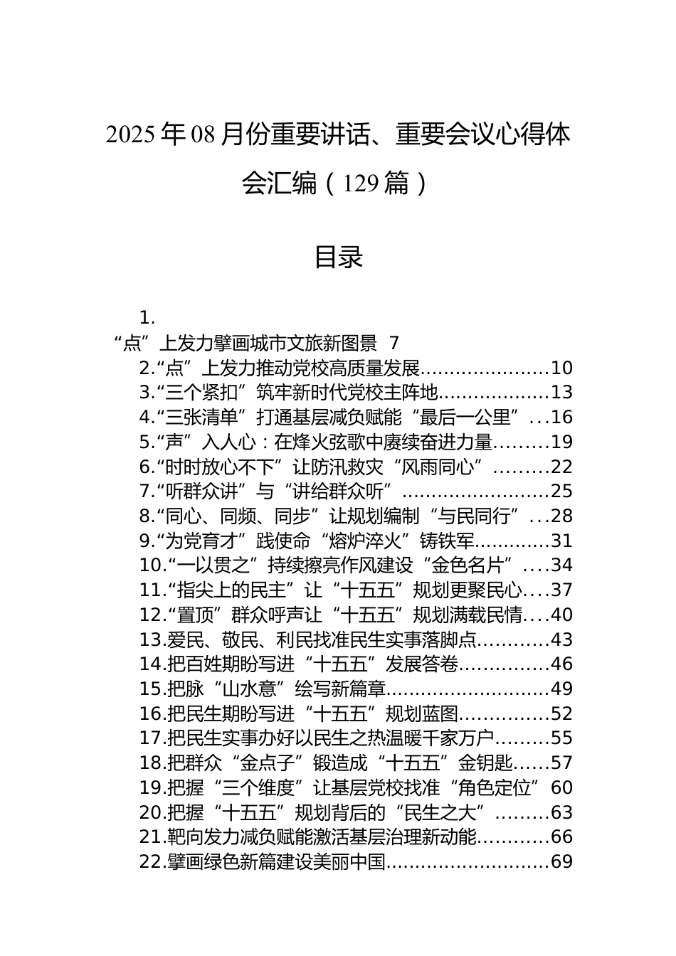 2025年08月份重要講話、重要會議心得體會匯編(129篇)