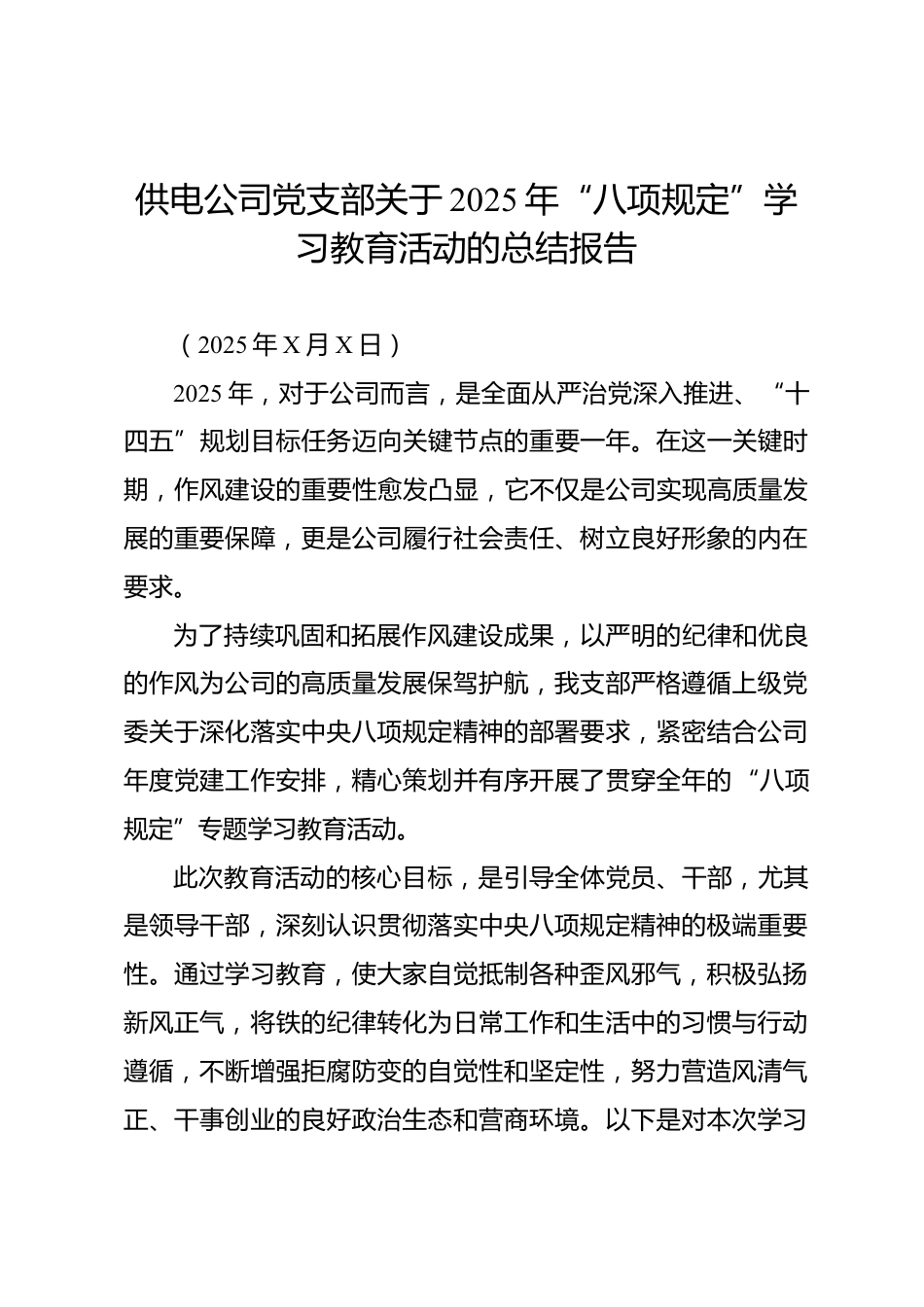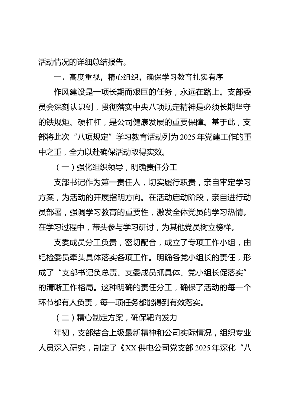 供電公司黨支部2025年八項規(guī)定學(xué)習(xí)教育工作總結(jié)
