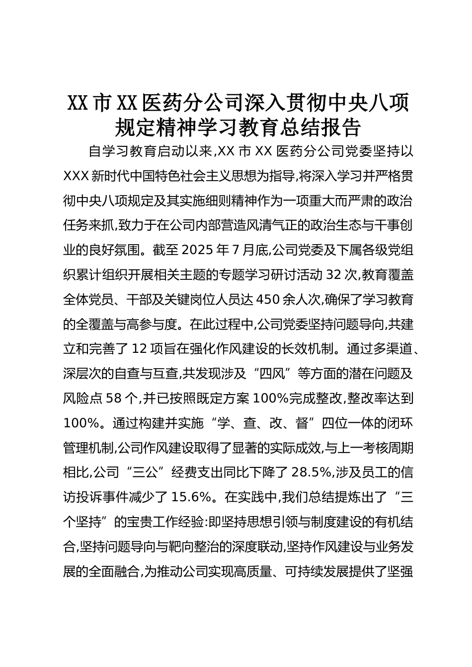 XX市XX醫(yī)藥分公司深入貫徹中央八項規(guī)定精神學(xué)習(xí)教育總結(jié)報告
