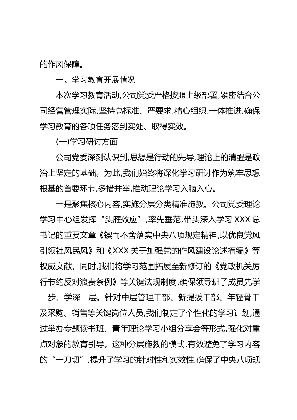 XX市XX醫(yī)藥分公司深入貫徹中央八項規(guī)定精神學(xué)習(xí)教育總結(jié)報告自學(xué)習(xí)教育啟動以來,XX市XX醫(yī)藥分公司黨委堅持以XXX新時代中國特色社會主義思想為指導(dǎo),將深入學(xué)習(xí)并嚴(yán)格貫徹中央八項規(guī)定及其實施細(xì)則精神作為一項重大而嚴(yán)肅的政治任務(wù)來抓,致力于在公司內(nèi)部營造風(fēng)清氣正的政治生態(tài)與干事創(chuàng)業(yè)的良好氛圍。截至2025年7月底,公司黨委及下屬各級黨組織累計組織開展相關(guān)主題的專題學(xué)習(xí)研討活動32次,教育覆蓋全體黨員、干部及關(guān)鍵崗位人員達(dá)450余人次,確保了學(xué)習(xí)教育的全覆蓋與高參與度。在此過程中,公司黨委堅持問題導(dǎo)向,共建立和完善了12項旨在強(qiáng)化作風(fēng)建設(shè)的長效機(jī)制。通過多渠...