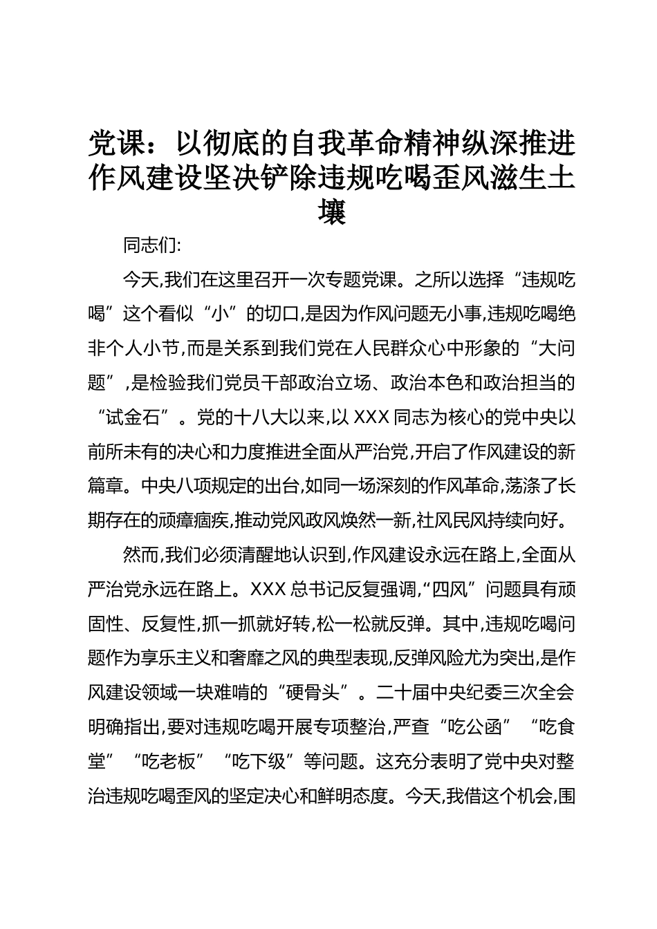 黨課:以徹底的自我革命精神縱深推進(jìn)作風(fēng)建設(shè)堅(jiān)決鏟除違規(guī)吃喝歪風(fēng)滋生土壤