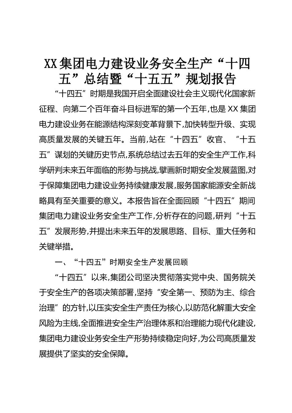 XX集團電力建設業(yè)務安全生產“十四五”總結暨“十五五”規(guī)劃報告