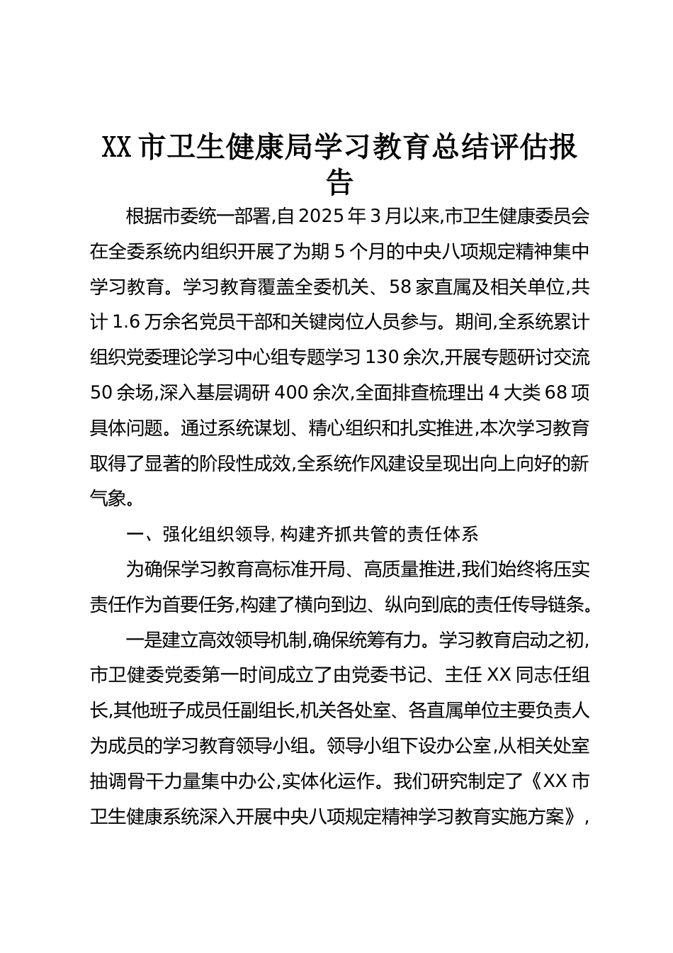 XX市衛(wèi)生健康局學(xué)習(xí)教育總結(jié)評估報告