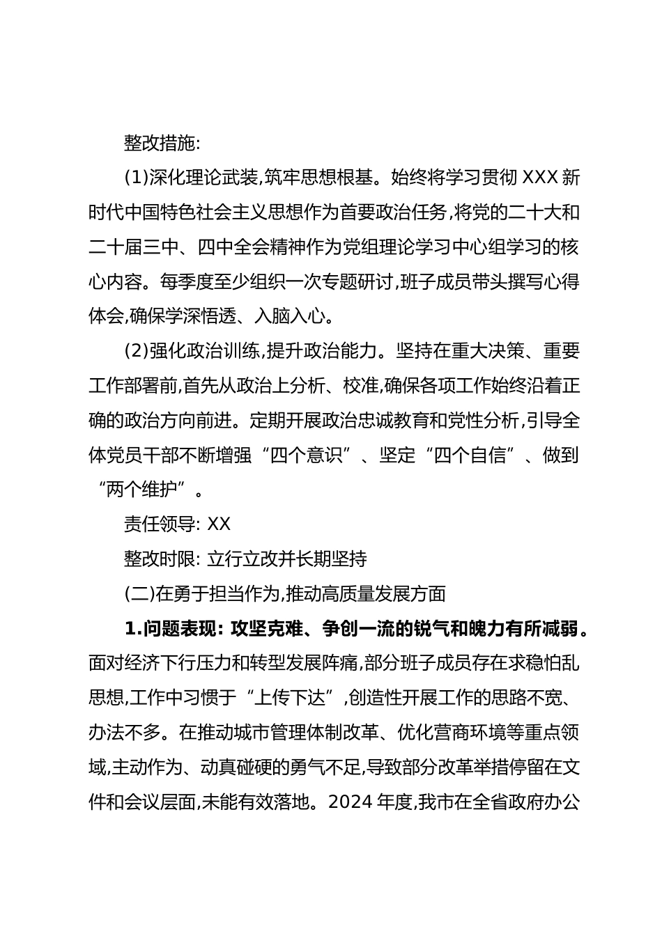 XX市人民政府辦公室領(lǐng)導(dǎo)班子問題整改及批評意見清單
