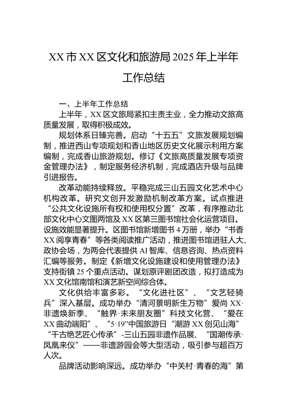 XX市XX區(qū)文化和旅游局2025年上半年工作總結(jié)