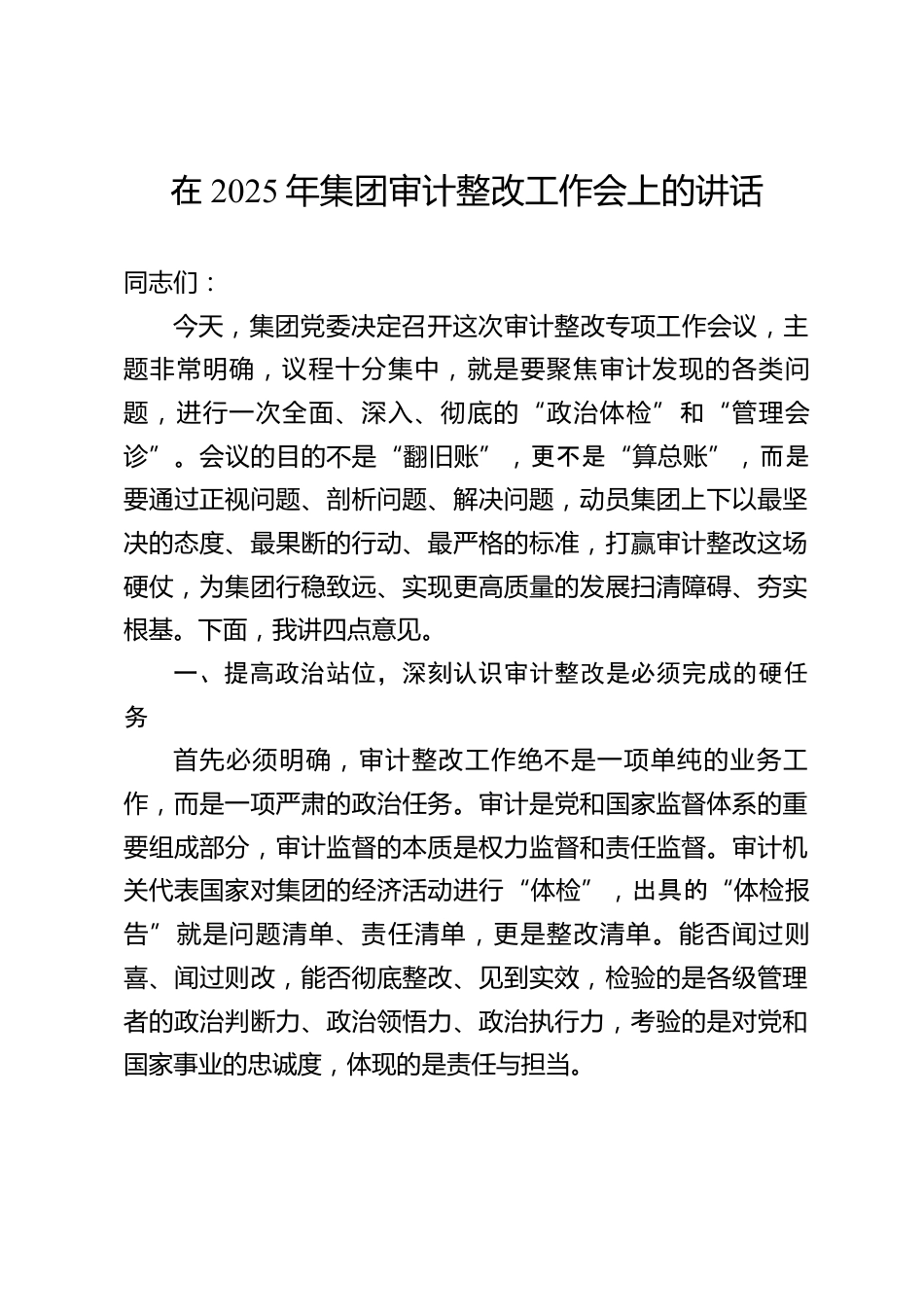 在2025年集團(tuán)審計(jì)整改工作會(huì)上的講話