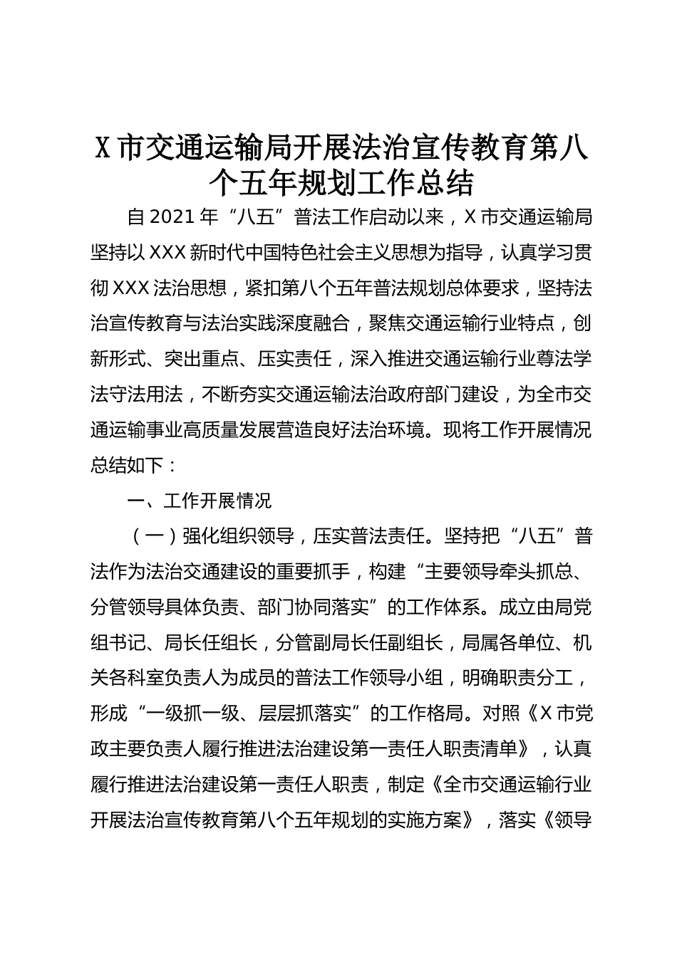 X市交通運輸局開展法治宣傳教育第八個五年規(guī)劃工作總結