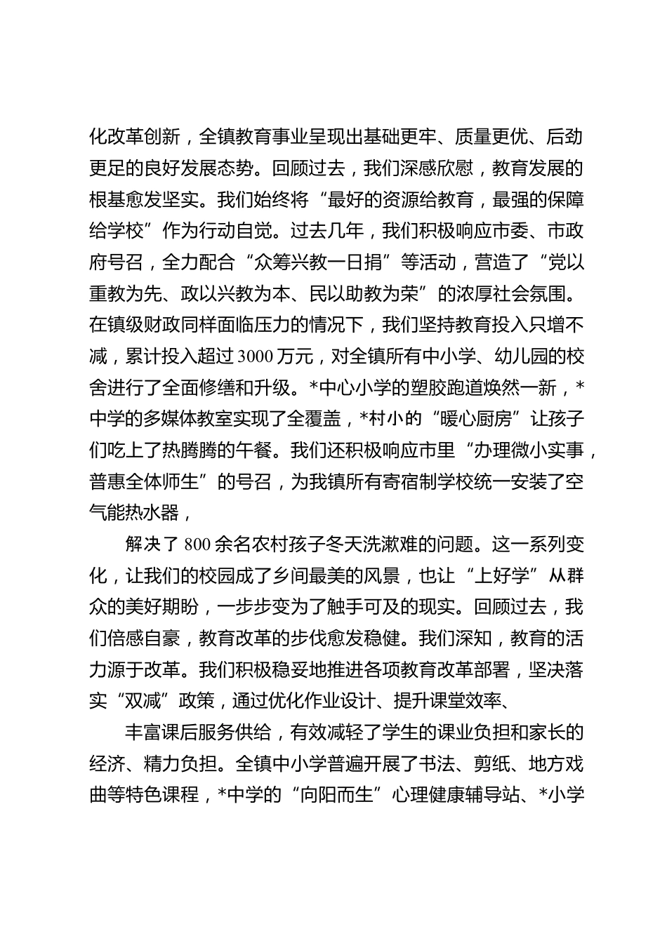 在2025年全鎮(zhèn)慶祝教師節(jié)大會上的講話尊敬的各位領導、各位來賓,同志們,老師們,朋友們:金秋送爽,丹桂飄香。在這充滿喜悅和希望的美好時節(jié),我們迎來了第41個教師節(jié)。今天,我們懷著無比崇敬的心情在此歡聚一堂,隆重舉行慶祝大會,共同回顧我鎮(zhèn)教育事業(yè)發(fā)展的堅實足跡,表彰一批為教育事業(yè)作出突出貢獻的先進集體和先進個人,擘畫*鎮(zhèn)教育更加輝煌燦爛的明天。首先,我謹代表*鎮(zhèn)黨委、鎮(zhèn)政府,向蒞臨指導的市教育局各位領導表示熱烈的歡迎和衷心的感謝!向長期以來默默耕耘、無私奉獻在教育戰(zhàn)線上的全鎮(zhèn)廣大教師、教育工作者和離退休老教師,致以節(jié)日的祝賀和誠摯的問...