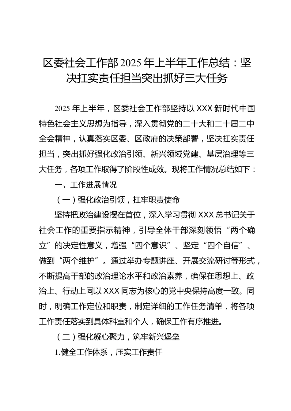 區(qū)委社會(huì)工作部2025年上半年工作總結(jié):堅(jiān)決扛實(shí)責(zé)任擔(dān)當(dāng) 突出抓好三大任務(wù)
