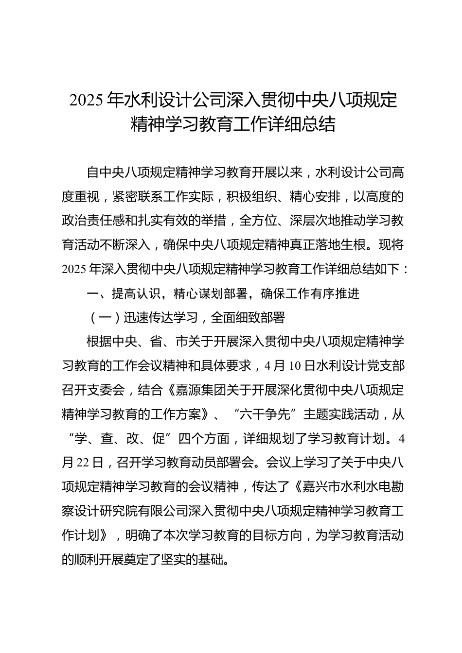 2025 年水利設計公司深入貫徹中央八項規(guī)定精神學習教育工作詳細總結