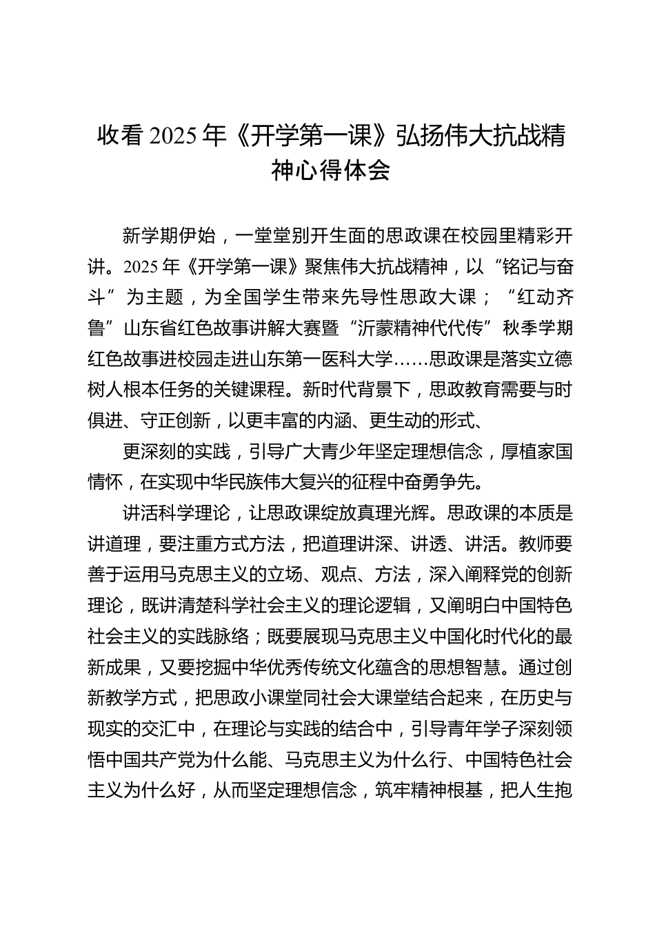 收看2025年《開學(xué)第一課》弘揚偉大抗戰(zhàn)精神心得體會