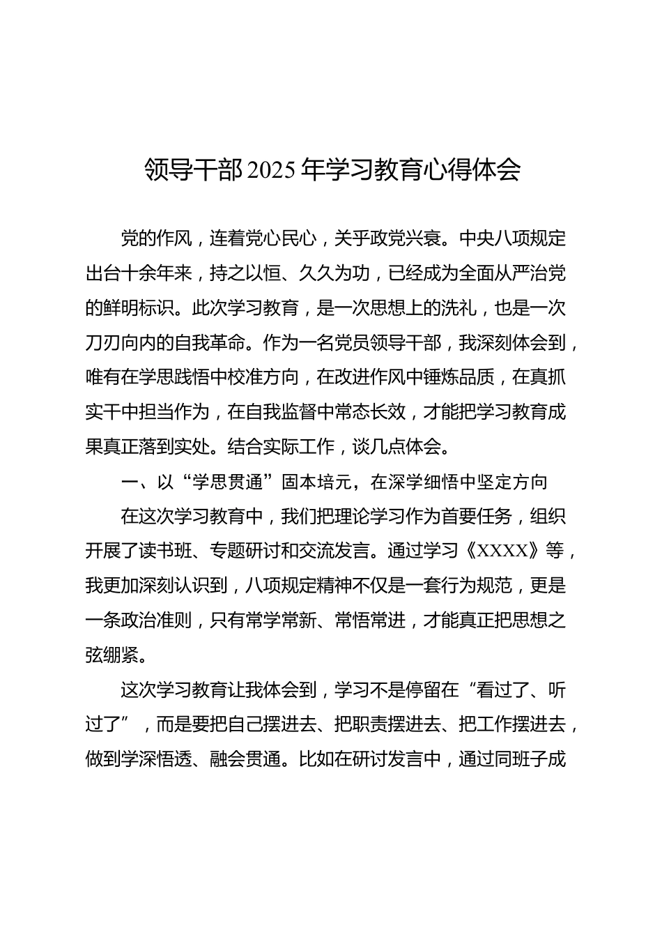 領(lǐng)導(dǎo)干部2025年八項(xiàng)規(guī)定學(xué)習(xí)教育心得體會(huì)