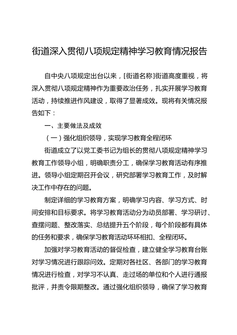 街道深入貫徹八項規(guī)定精神學(xué)習(xí)教育情況報告