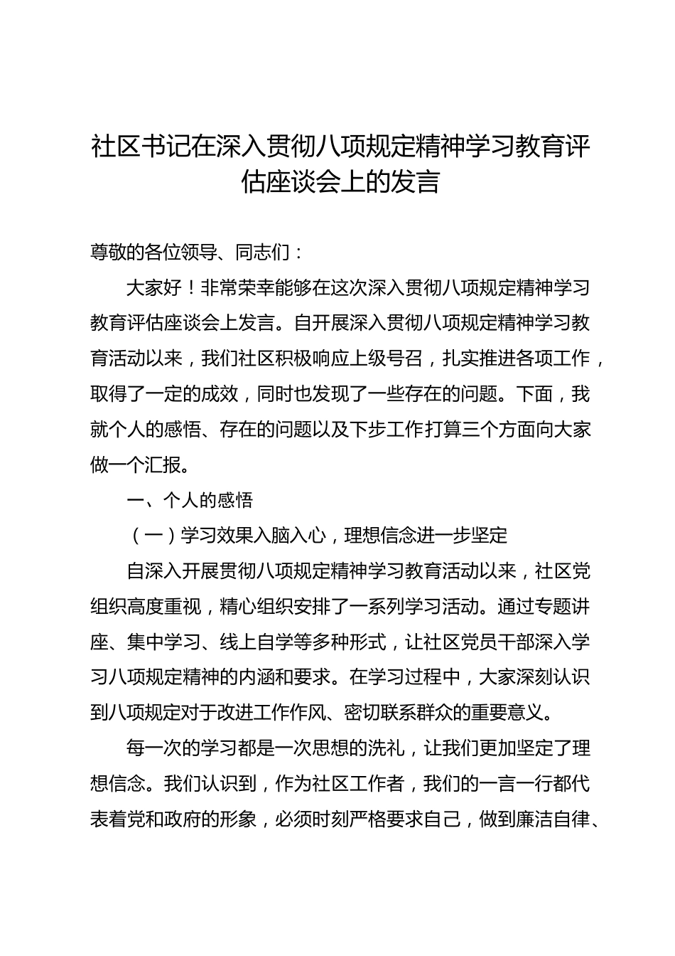 社區(qū)書記在深入貫徹八項規(guī)定精神學(xué)習(xí)教育評估座談會上的發(fā)言