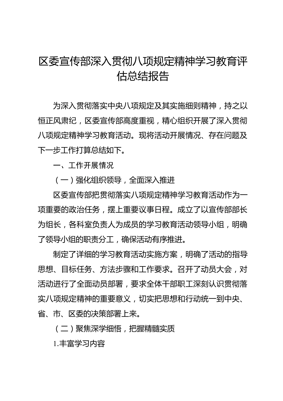 區(qū)委宣傳部深入貫徹八項(xiàng)規(guī)定精神學(xué)習(xí)教育評(píng)估總結(jié)報(bào)告
