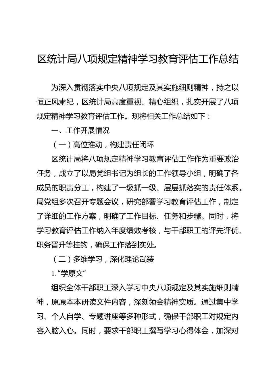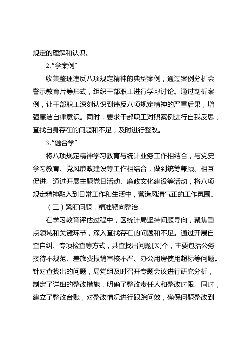 區(qū)統(tǒng)計(jì)局八項(xiàng)規(guī)定精神學(xué)習(xí)教育評(píng)估工作總結(jié)