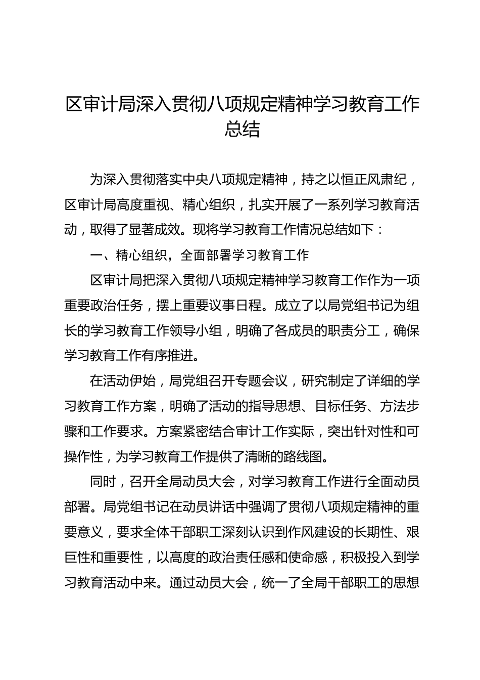 區(qū)審計局深入貫徹八項規(guī)定精神學習教育工作總結