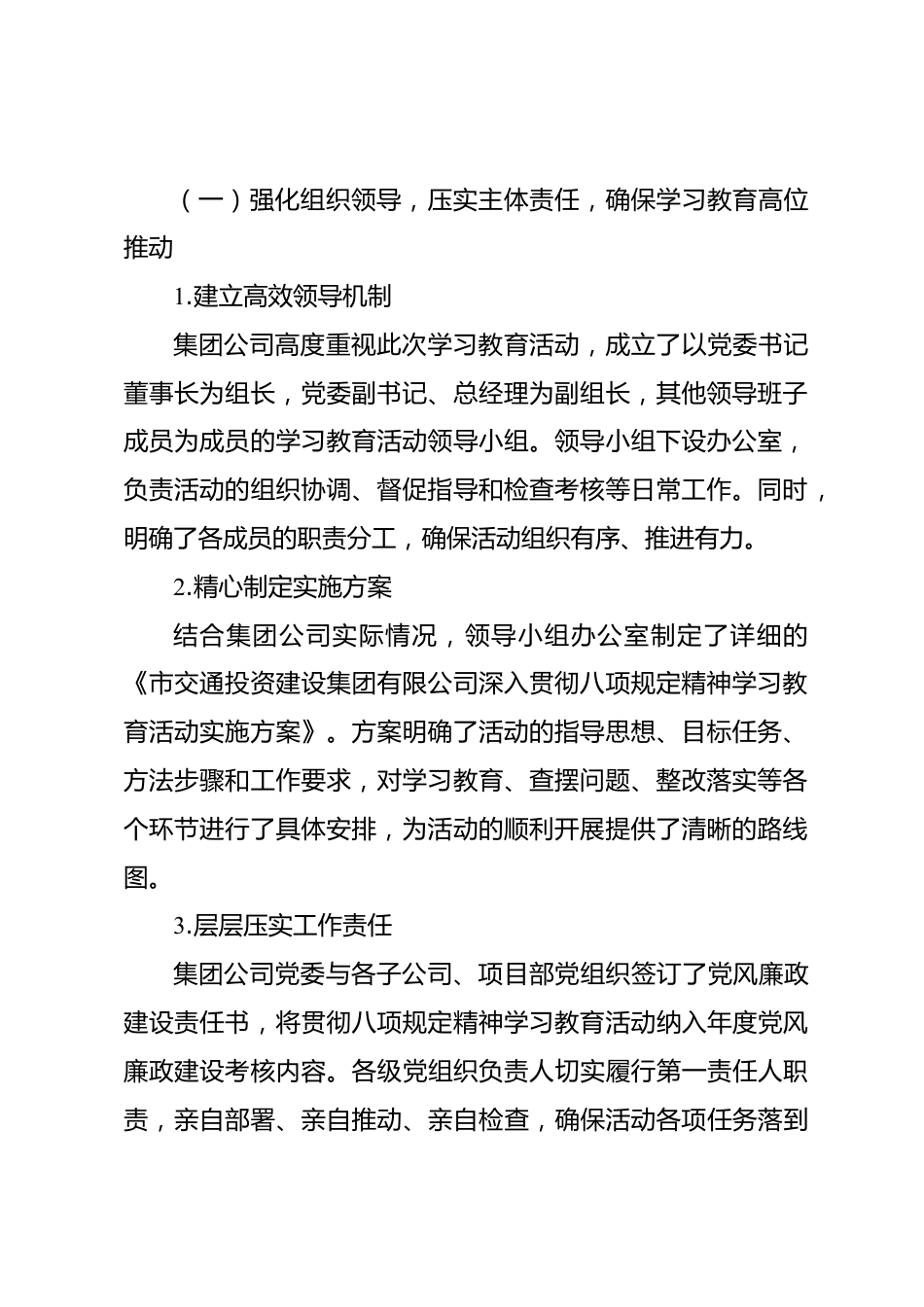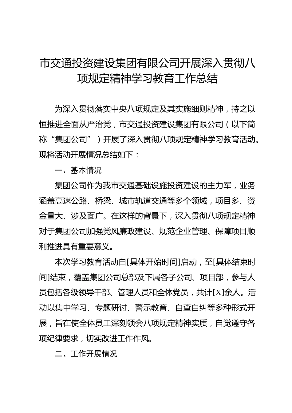 市交通投資建設(shè)集團有限公司開展深入貫徹八項規(guī)定精神學(xué)習(xí)教育工作總結(jié)