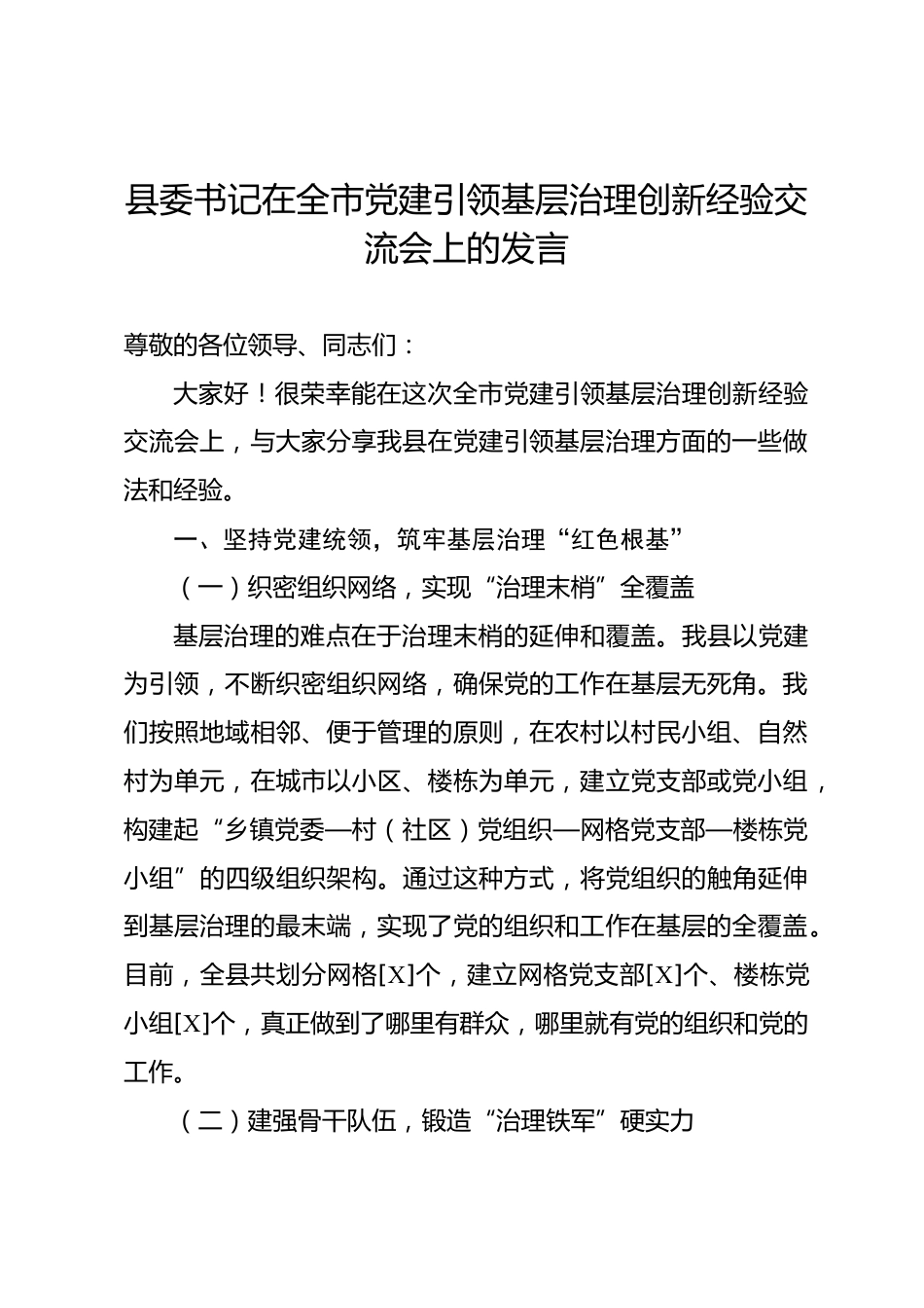 縣委書記在全市黨建引領(lǐng)基層治理創(chuàng)新經(jīng)驗交流會上的發(fā)言VIP免費