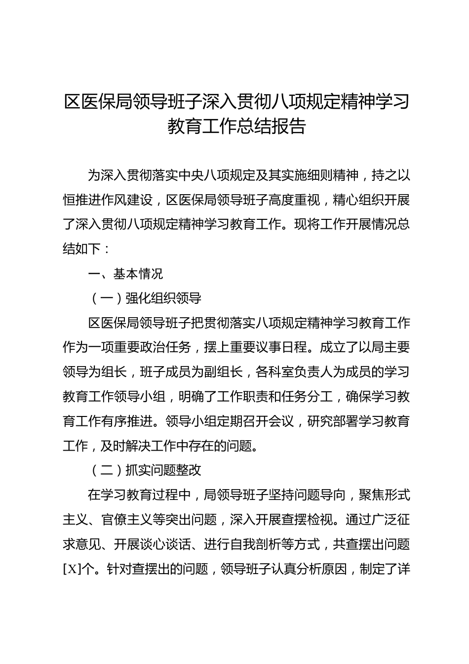 區(qū)醫(yī)保局領(lǐng)導(dǎo)班子深入貫徹八項規(guī)定精神學(xué)習(xí)教育工作總結(jié)報告
