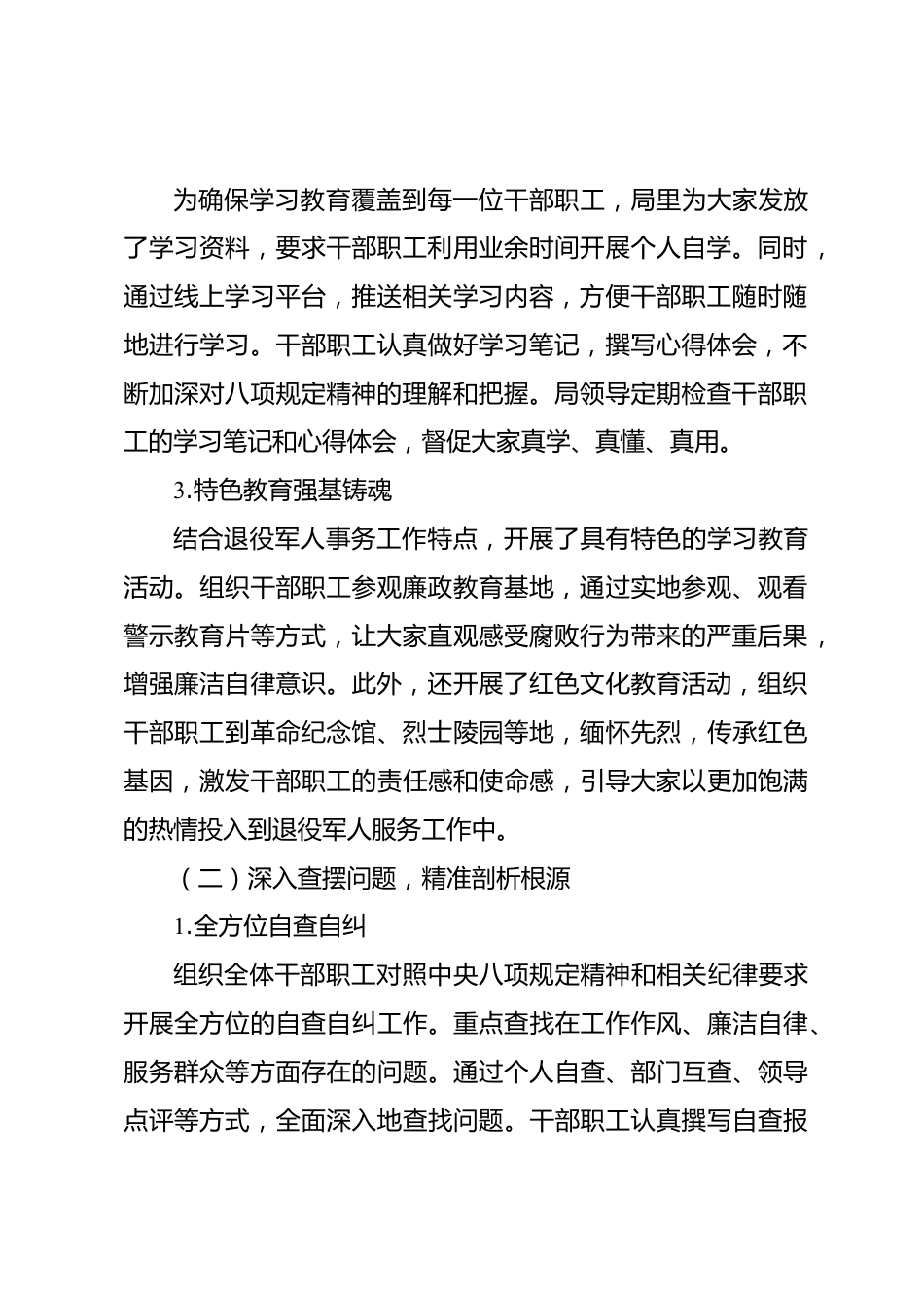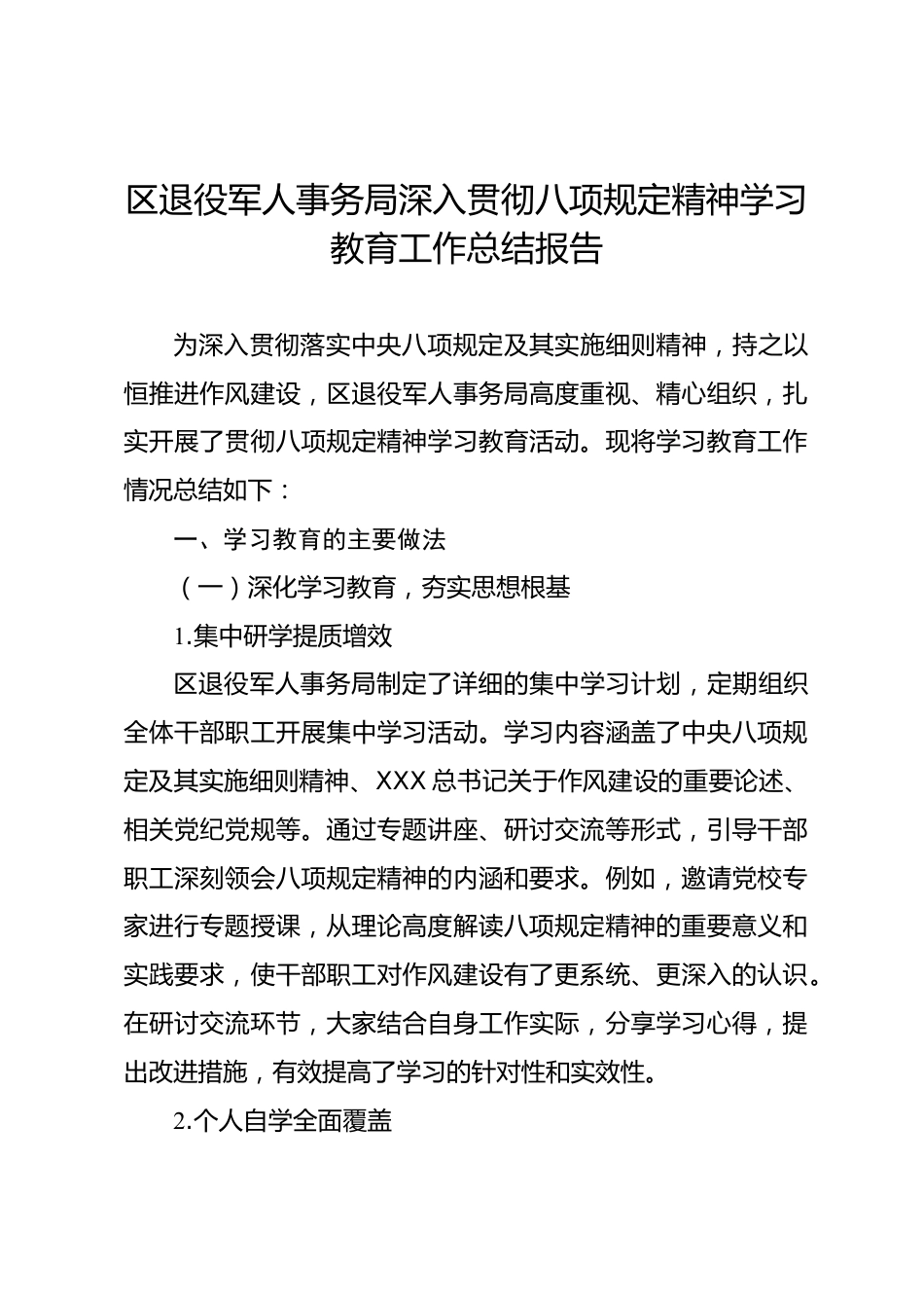 區(qū)退役軍人事務(wù)局深入貫徹八項規(guī)定精神學(xué)習(xí)教育工作總結(jié)報告